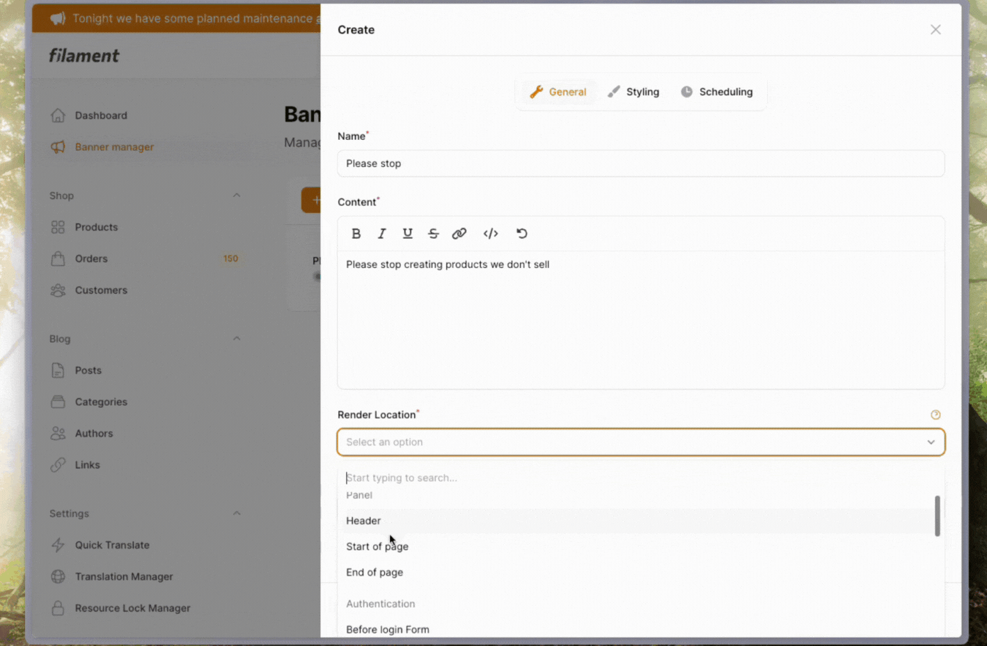 Once you’re done filling in the details, click Save, and your banner will be active based on the settings you chose.