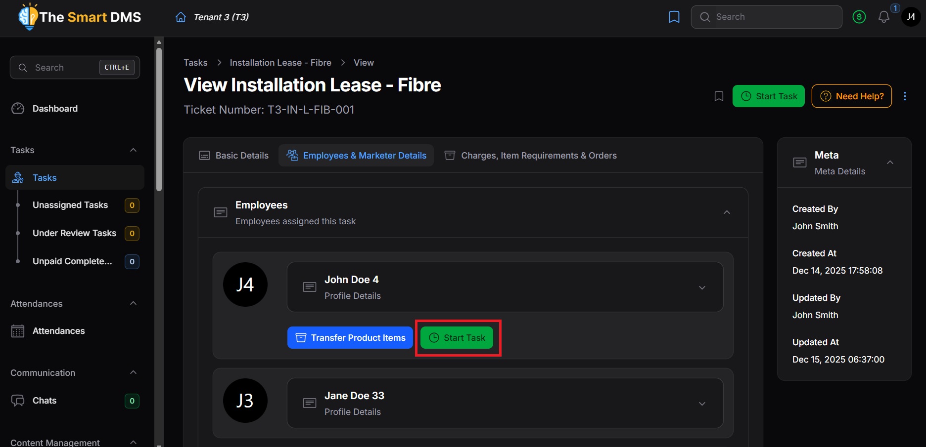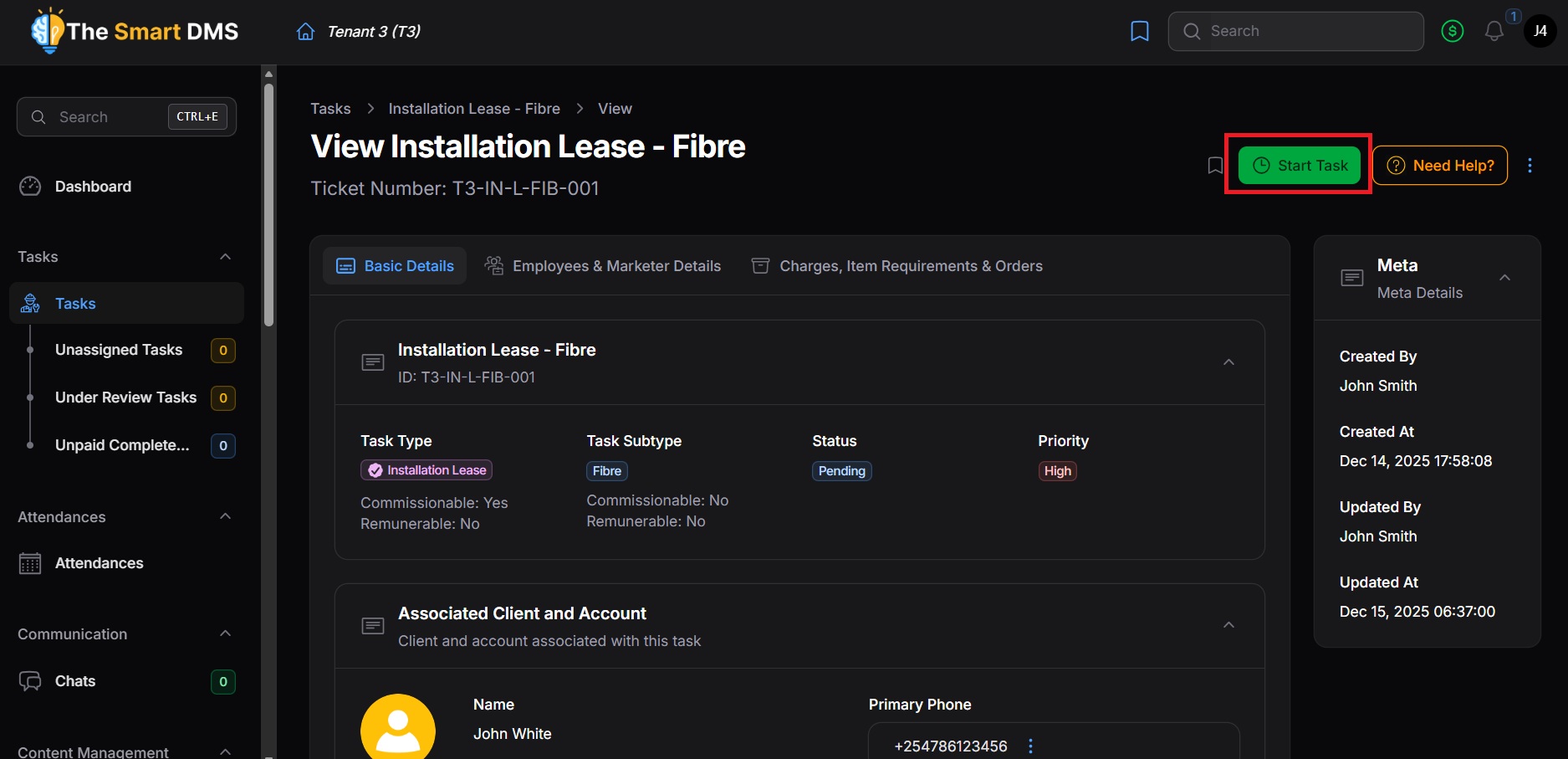 3. In the header section, you will find a Start Task button. Click it as needed.